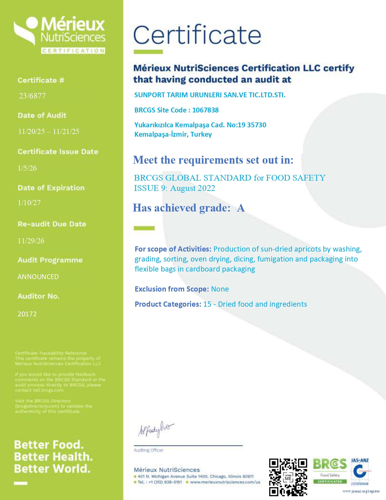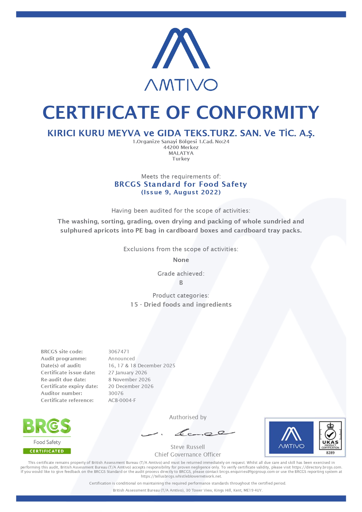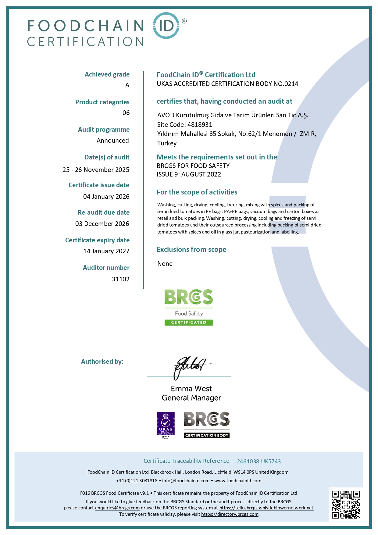 BRC CERTIFICATES